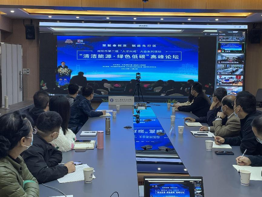 11月2日,由中共咸阳市委、咸阳市人民政府主办,咸阳市委组织部、咸阳市科学技术局承办的咸阳市第二届“人才兴咸”大会系列活动-“清洁能源·绿色低碳”高峰论坛成功举办。我校刘永亮校长在主会场参加会议。本次会议在我校崇文楼九楼第一会议室设分会场,梅创社副校长、新能源及装备研发院士工作站、咸阳市新能源及微电网重点实验室、生态技术研发与应用中心、应用化工技术研发中心各相关人员及科研处全体人员在分会场参加了会议。