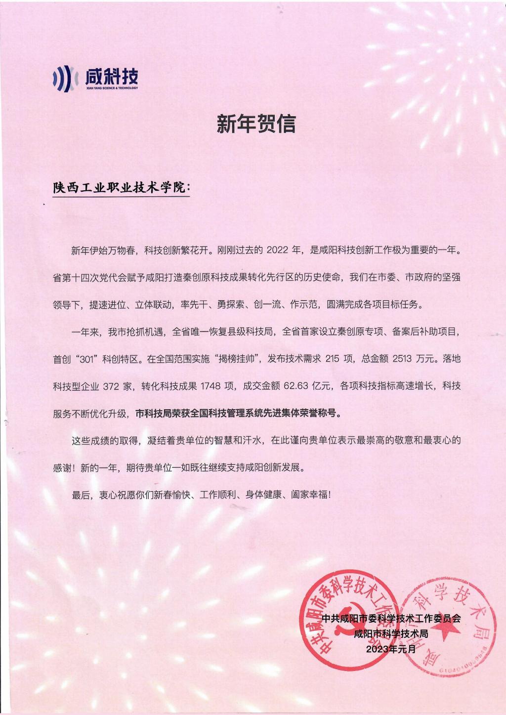 我校对市科技局长期以来对我校科研平台建设、科研团队、科研项目立项给予大力支持。学校今后将继续与市科技局加强联系,积极承担市科技任务,让我校更多的科技成果服务咸阳的高质量发展。