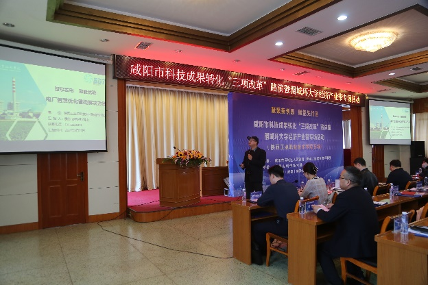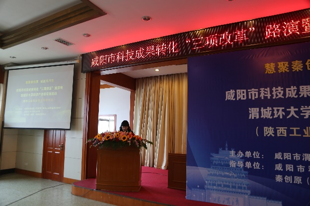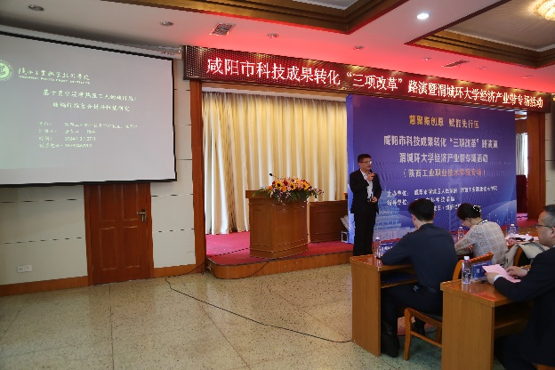 为推动“政产学研用金”深度融合,持续激发我校科研工作者科技创新活力,加速科技成果转化,3月27日,由咸阳市渭城区人民政府和我校联合主办,咸阳市科技局、秦创原(咸阳)创促中心指导举办的咸阳市科技成果转化“三项改革”路演暨渭城环大学经济产业带首场专场活动(陕西工业职业技术学院专场)在咸阳市二〇二研究所燕原宾馆圆满举行。