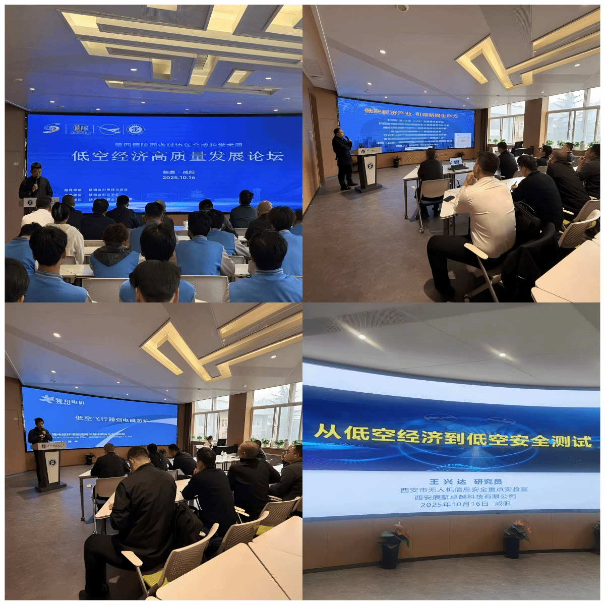 10月16日下午,由陕西省科学技术协会指导,陕西省航空学会主办,我校承办的“第四届陕西省科协年会——低空经济高质量发展论坛”在学校崇文楼马克思主义学院VR实训室顺利举行。论坛以“探寻低空经济新蓝海,构筑产业发展新引擎”为主题,旨在搭建高水平交流平台,凝聚智慧、汇聚力量,助力低空经济产业创新发展。学校科研处副处长赵芃沛及航空工程学院、土木工程学院、商贸与流通学院师生代表参加了本次活动。论坛由陕西省航空学会副秘书长穆豹特主持。