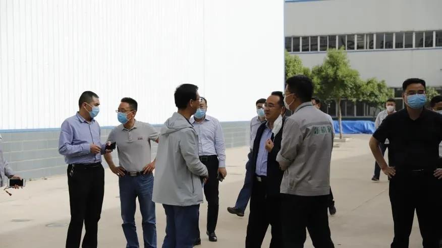 侯延升博士陪同山东省工作组组长赵正来同志、兖州区委书记王宏伟等人参观了项目建设现场,并对项目的建设及进展情况做了详细的汇报。他表示,该项目依托我院打造的技术技能创新服务平台,加快与高端企业深度融合的发展战略以及我院科研团队的六项专利和曜晖集团先进全电熔窑炉技术开展建设,计划于2020年6月建成国内首条超薄柔性玻璃生产线,达到年产30万平方米超薄柔性玻璃产能,为我院“双高计划”院校建设、科研成果转化和服务产业升级和地方经济社会发展积累经验。