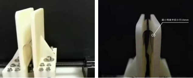 2019年在陕西工业职业技术学院科转项目“柔性玻璃产线开发”中,以专利转让、技术支持等方式与山东曜晖联合组建了国内第一个柔性玻璃热拉工厂,实现在山东的产业落地转化,该产线投资2.1亿元。开发出国内自主知识产权柔性玻璃料方AMZ-6,及最为关键的核心成形设备:铂铑合金板根成型器、梯度温控炉、多层变速夹持装置等装备,打破国外核心设备技术垄断。成功拉制出120μm、100μm(图2)、80μm、50μm多档次厚度的柔性玻璃,实现最长300mm切割,最小弯曲半径3.5mm(图3)。该成果获得国内多位专家认可,并在央视二套、教育频道、中国教育报等多家媒体报道。
