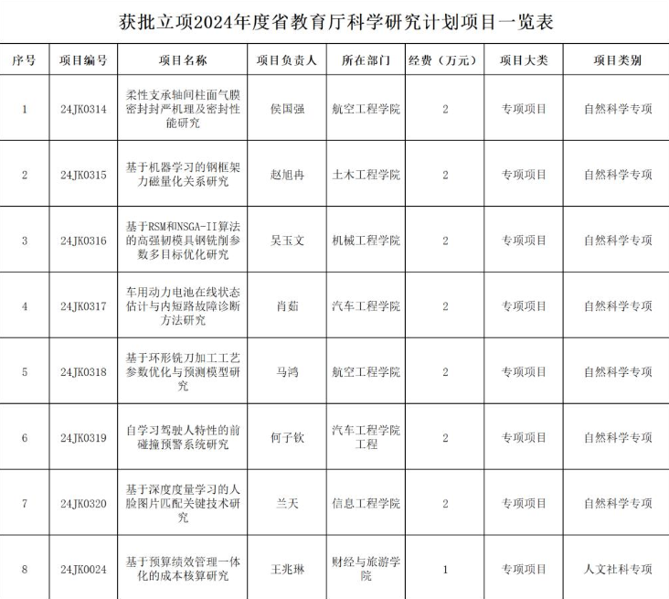 近日,接《陕西省教育厅关于下达2024年度科研计划项的通知》(陕教函〔2025〕96号),我校推荐申报的23项科研项目,获批立项20项,是我校获批立项项目类别和立项项目数量最多的一次,其中自然科学专项7项,人文社科专项2项,高校工程研究中心项目6项,哲社重点研究基地项目2项,青年创新团队项目2项,教育管理专项项目1项,共获批经费65万元。